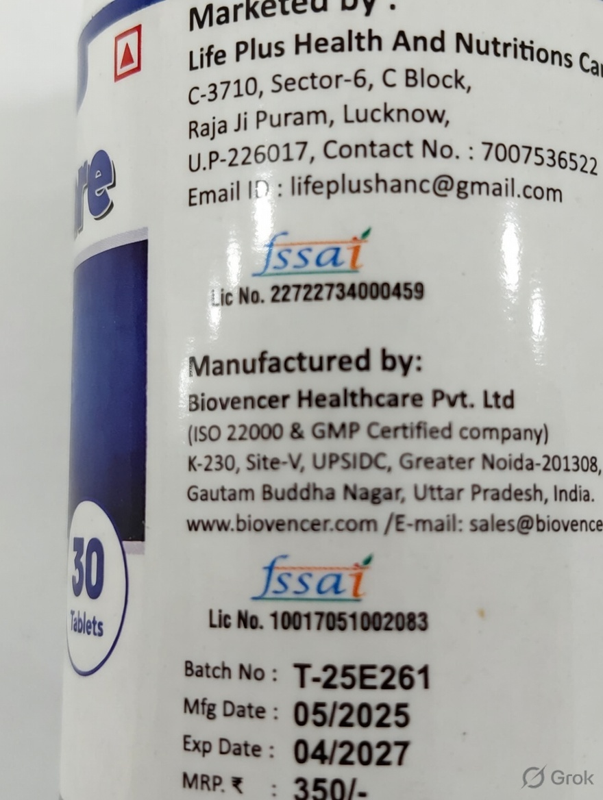 Chondroitin Sulphate (100 mg): Helps retain fluid in joints and prevents cartilage breakdown.