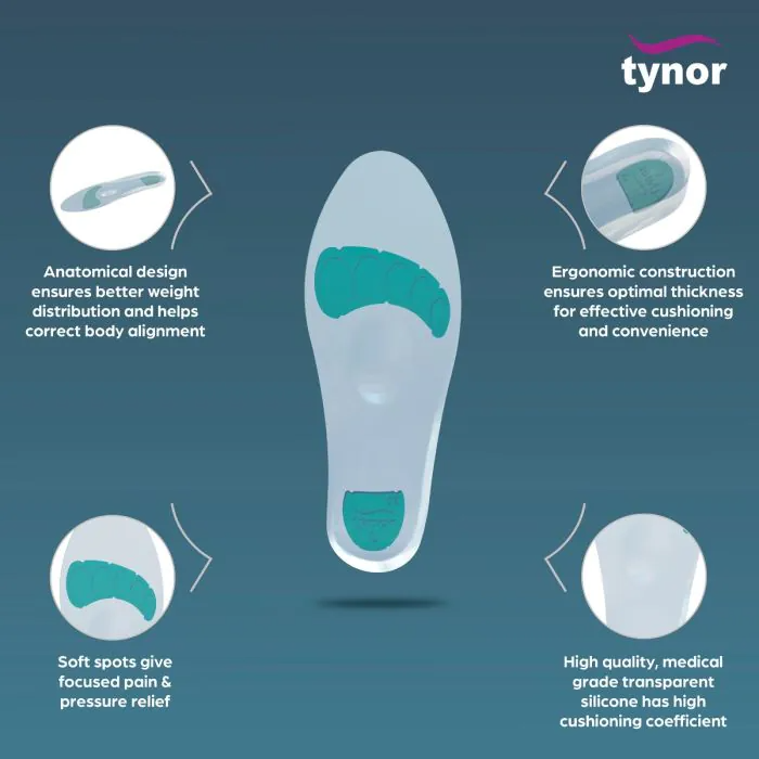 - Anatomically designed for weight distribution on the foot, it provides peak shock load reduction to the bones and the joint