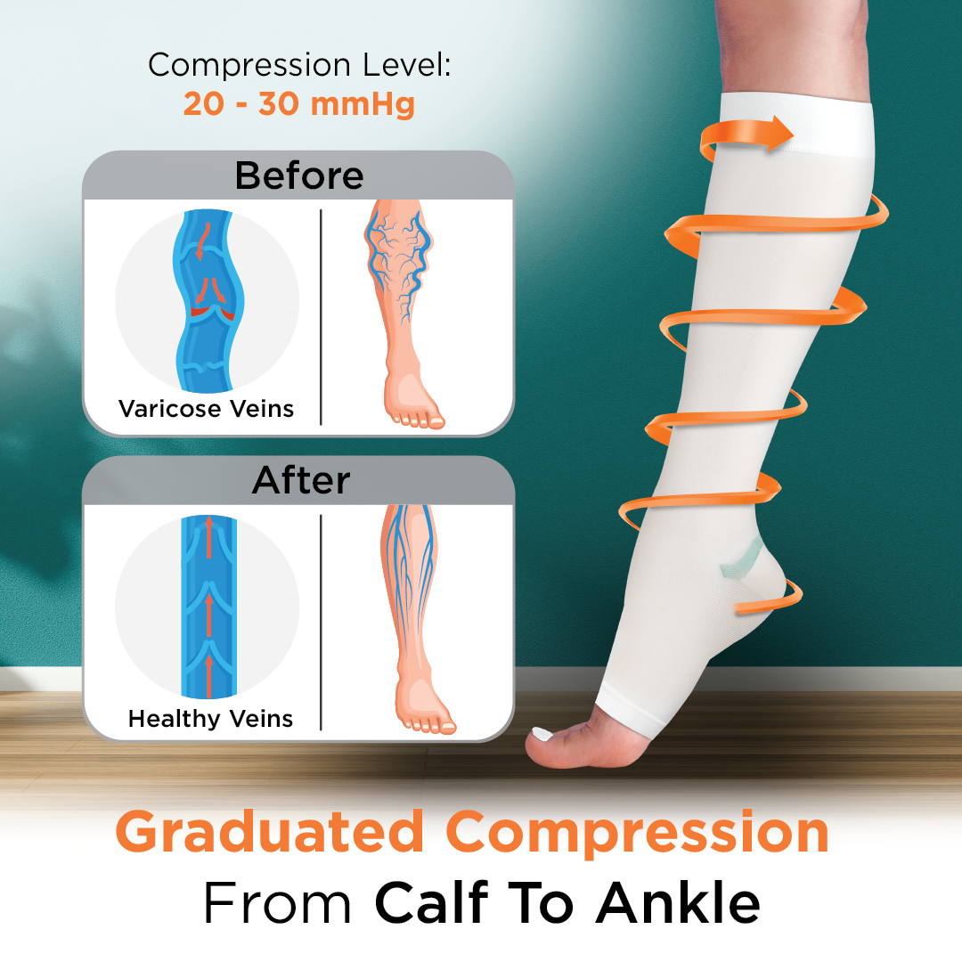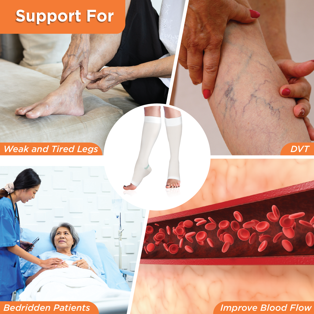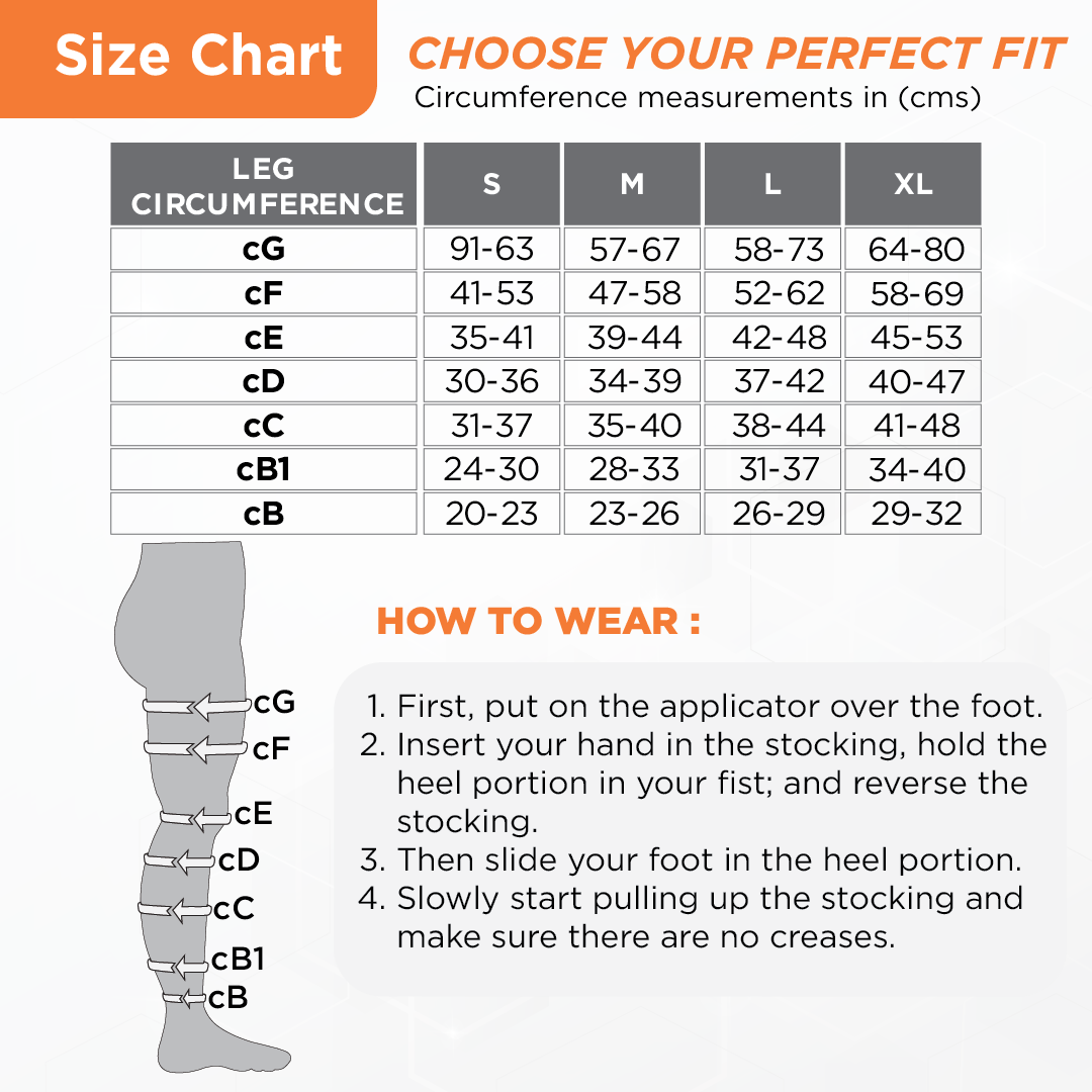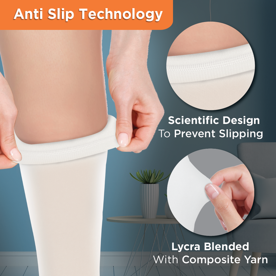 Stockings provide graduated compression from the ankle to the thigh. It helps to improve blood flow and prevent deep vein thrombosis. It is lightweight and comfortable to wear. These anti-embolism stockings can be used for the prevention of deep vein thrombosis, DVT, for bedridden patients, patients admitted in the ICU during surgery & other conditions causing pain & discomfort in the legs.