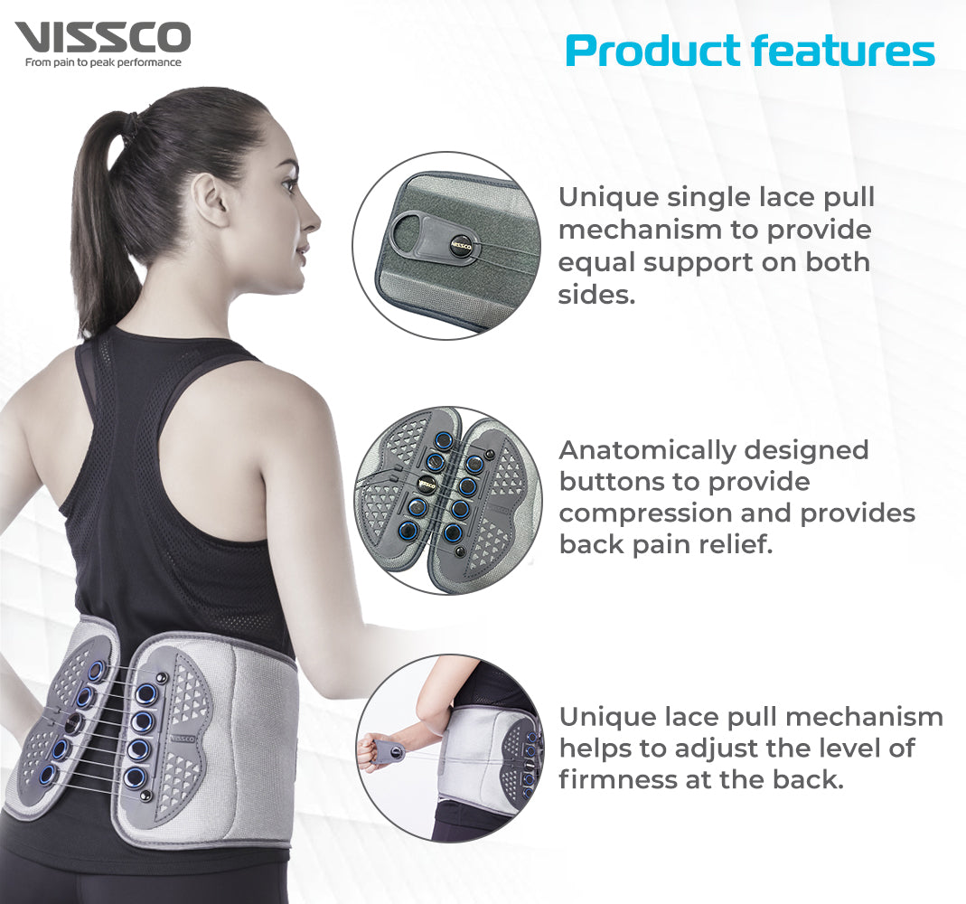 Scientifically designed to provide support and stability to the low back by a unique lace-pull mechanism. The unique lace pull mechanism helps to adjust the level of firmness at the back. Flexi Lacepull LS Belt features moderate support, giving you sufficient support in the lower back areas. The 8 inch width to provide full lower back support, and anatomically designed buttons to provide compression and back pain relief, The Inner 4 splints on either sides provide extra spine support to reduce back pain, Fiber panel on outer side retains shape to cover the lower back helping with lower back ache pain.