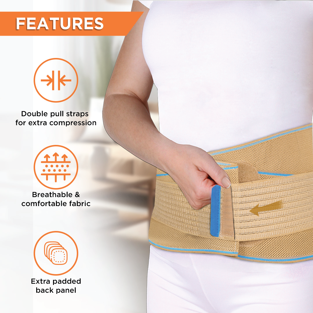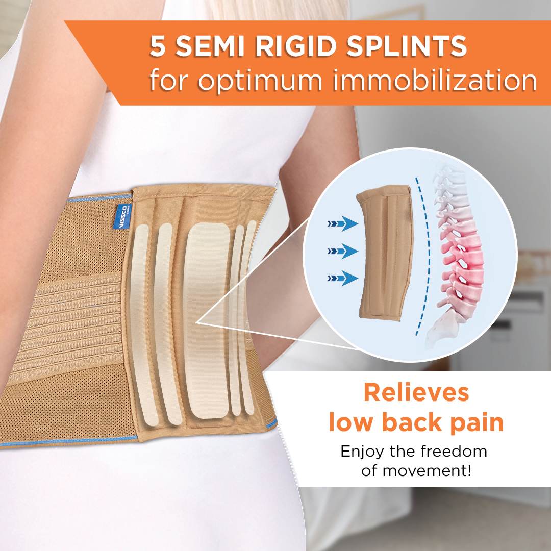 Scientifically designed using loop elastic technology, this belt ensures a perfect fit. The belt’s compression, enhanced by a dual adjustable strap, is optimized for a snug fit around the waist. ABS splints reinforce the back muscles, promoting good posture, reducing lordosis, and preventing pelvic anti-rotation. This belt provides immediate and noticeable therapeutic relief to the lumbar spine. It can be used for acute lower back pain, slip disc, disc herniation, lumbar spondylosis, muscle weakness in the lumbar spine and other conditions causing pain and discomfort in the lower back, and requiring mild support.